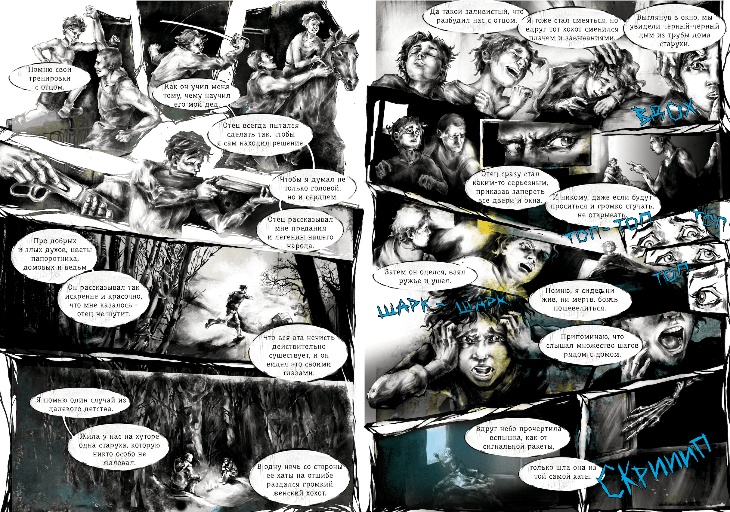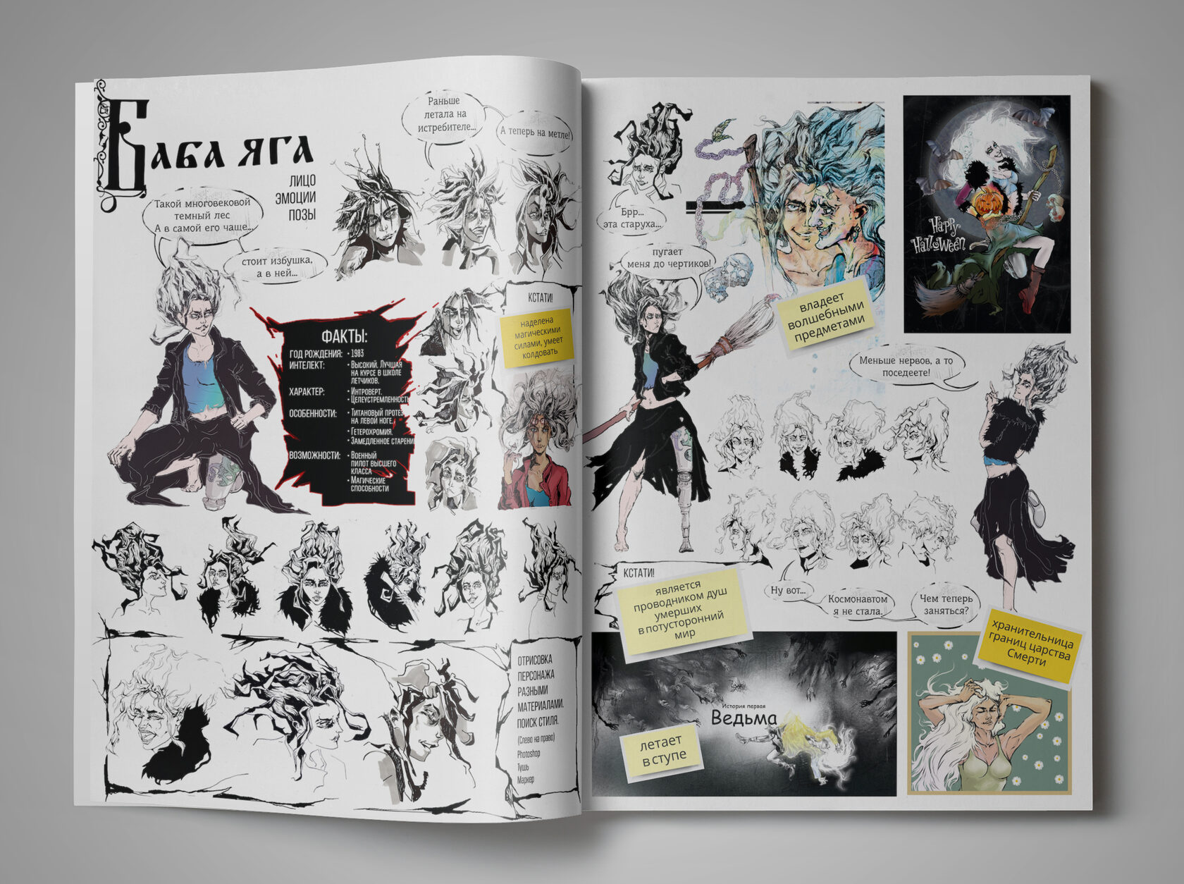 На данный момент реализован артбук «Русские несказки» включающий три полноценных комикса и восемь персонажей с описанием героев и набросками.